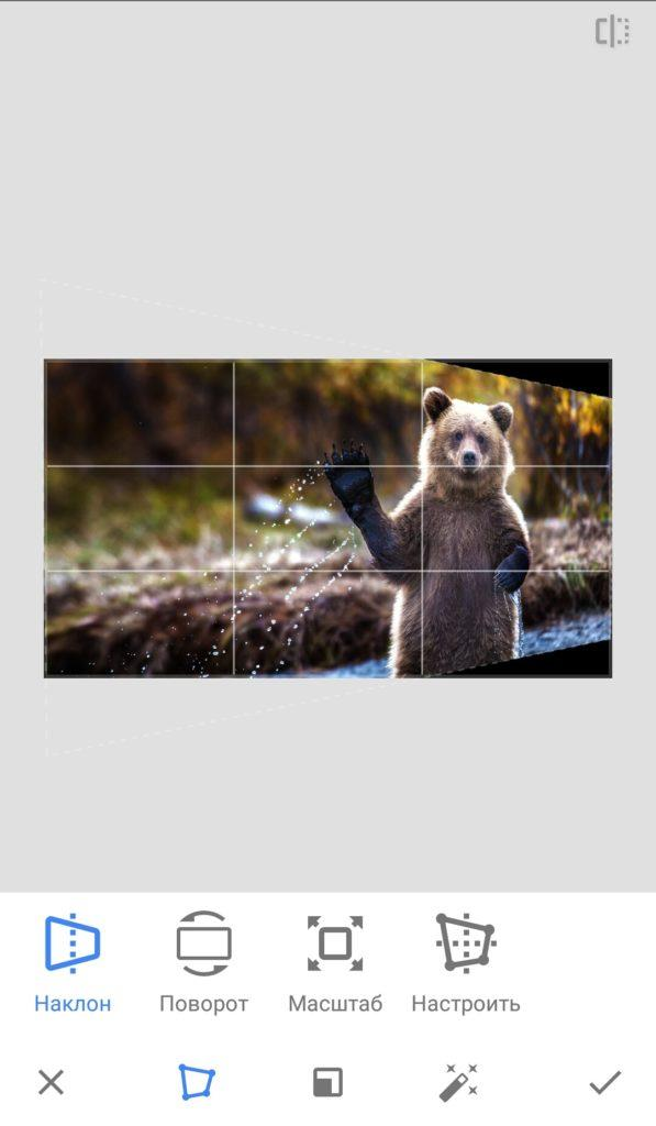 За размер и положение изображения в Snapseed отвечают несколько инструментов: