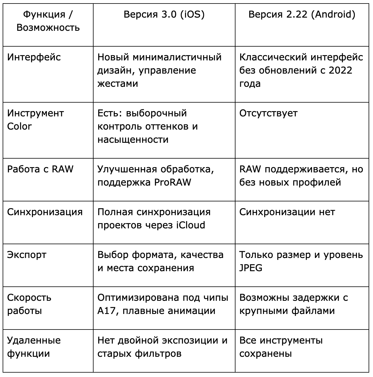 После появления версии 3.0 разница между платформами стала заметнее. Ниже — краткое сравнение возможностей: