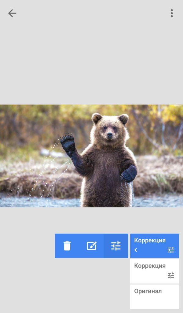 После перехода в меню «Инструменты» выберите пункт «Коррекция» — так вы откроете панель с основными параметрами обработки.