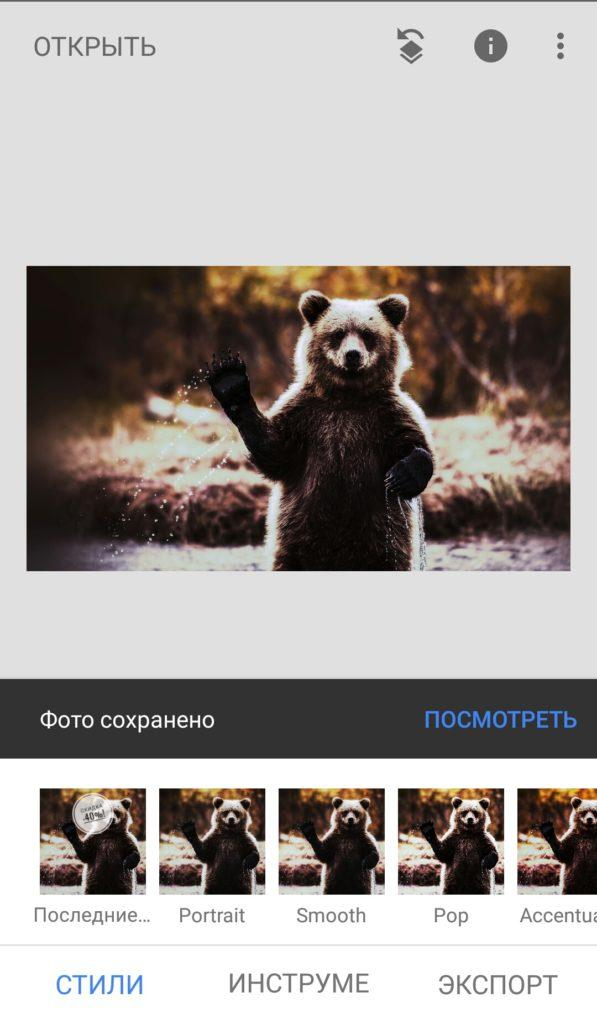 Работа с фотографиями в Snapseed