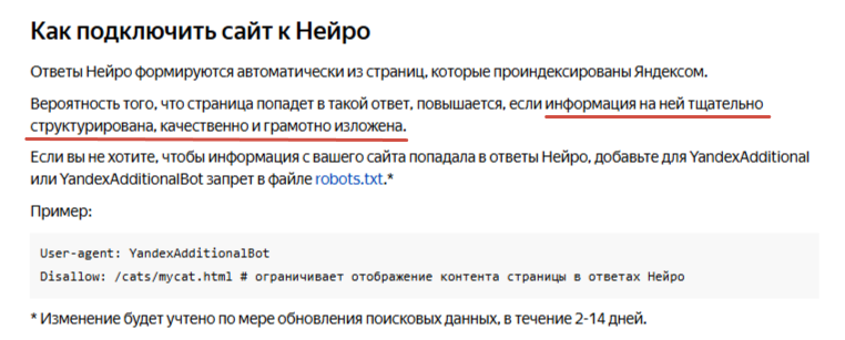 контент желательно оформлять так, чтобы нейросеть могла легко извлечь факт или тезис.