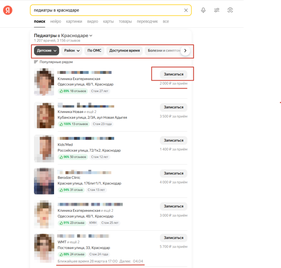 Однако это скорее исключение, чем правило. В большинстве коммерческих тем Яндекс по-прежнему отдаёт приоритет собственным сервисам, особенно в сфере услуг — там расширенные сниппеты Яндекс Услуг встречаются значительно чаще.
