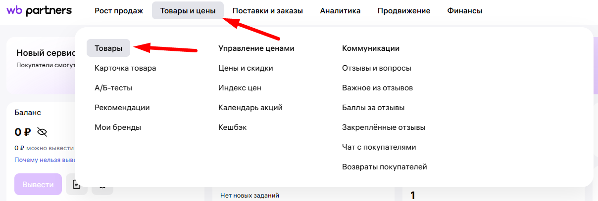 В кабинете селлера набор кодов находится в разделе «Товары и цены» → «Товары».