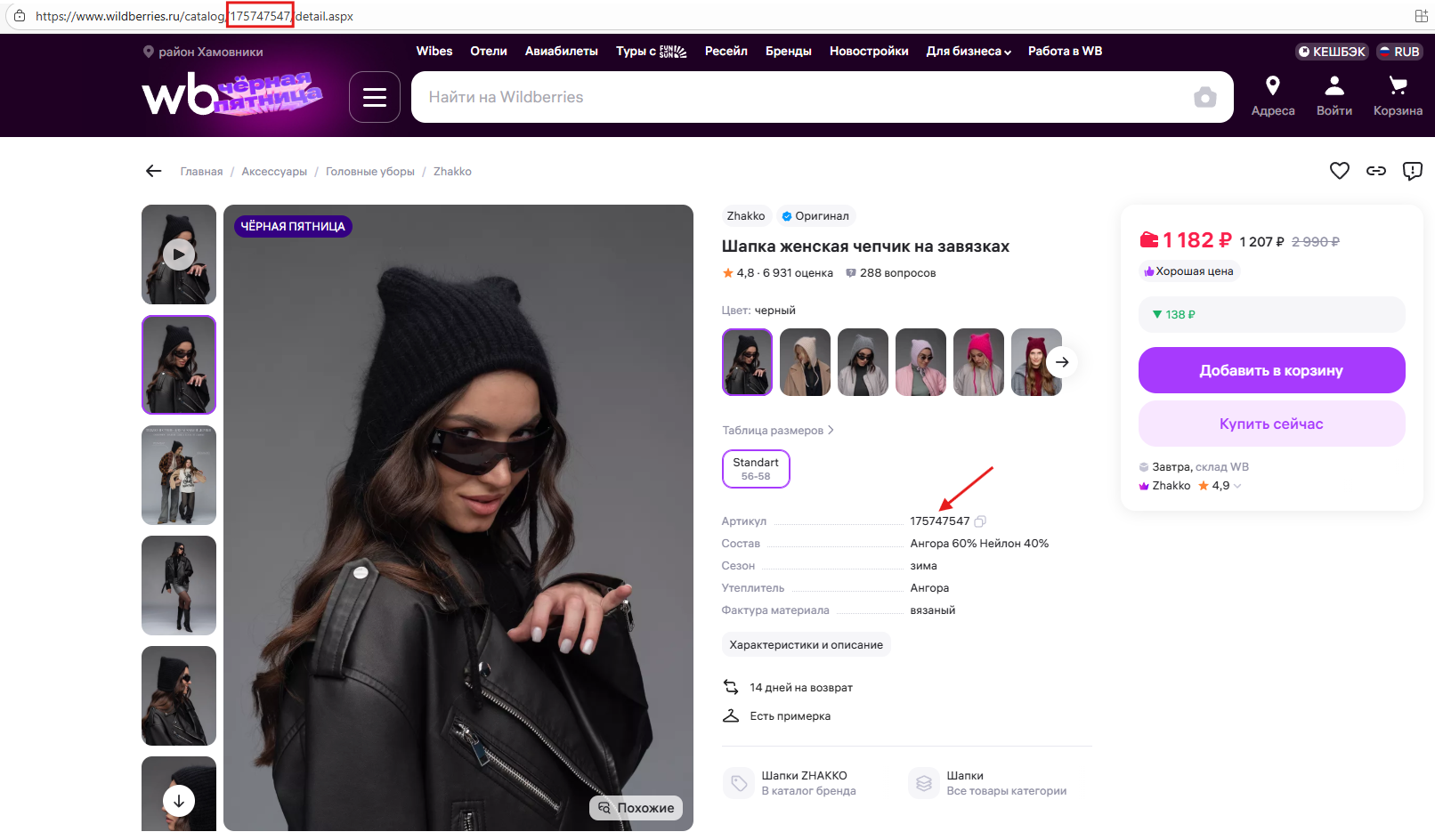 Кроме того, SKU всегда присутствует в URL страницы: достаточно взглянуть на ссылку, чтобы увидеть цифровую последовательность, которую использует маркетплейс для навигации.
