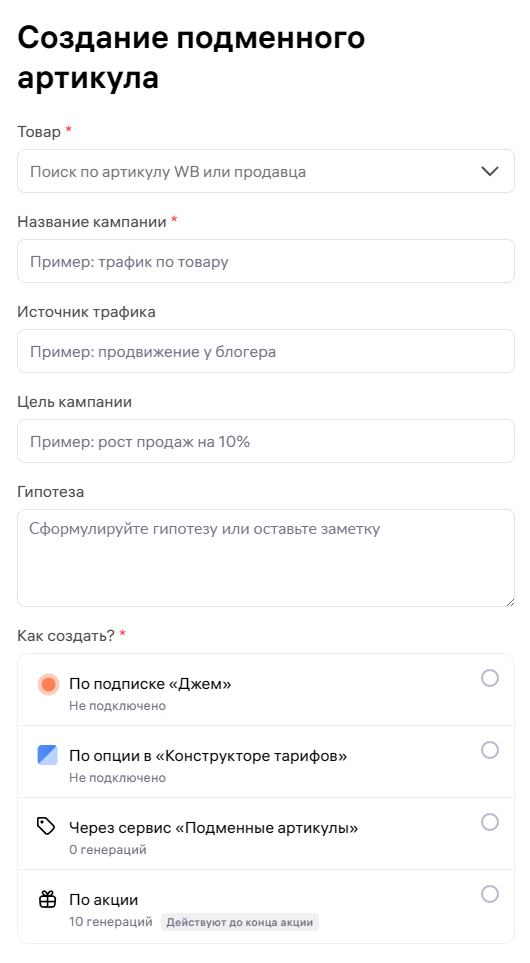 Да, при необходимости селлер может подключить подменные артикулы. Их используют в рекламных кампаниях, когда нужно понять, какие источники трафика дают лучшие результаты.