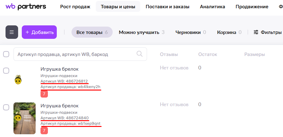 Где продавец находит артикулы в личном кабинете