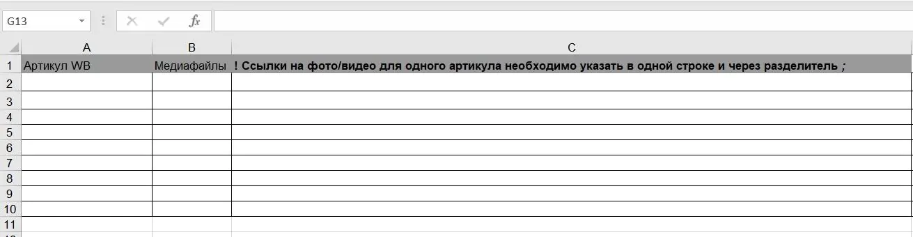 3. Укажите в таблице артикулы WB и прямые ссылки на фото и видео.