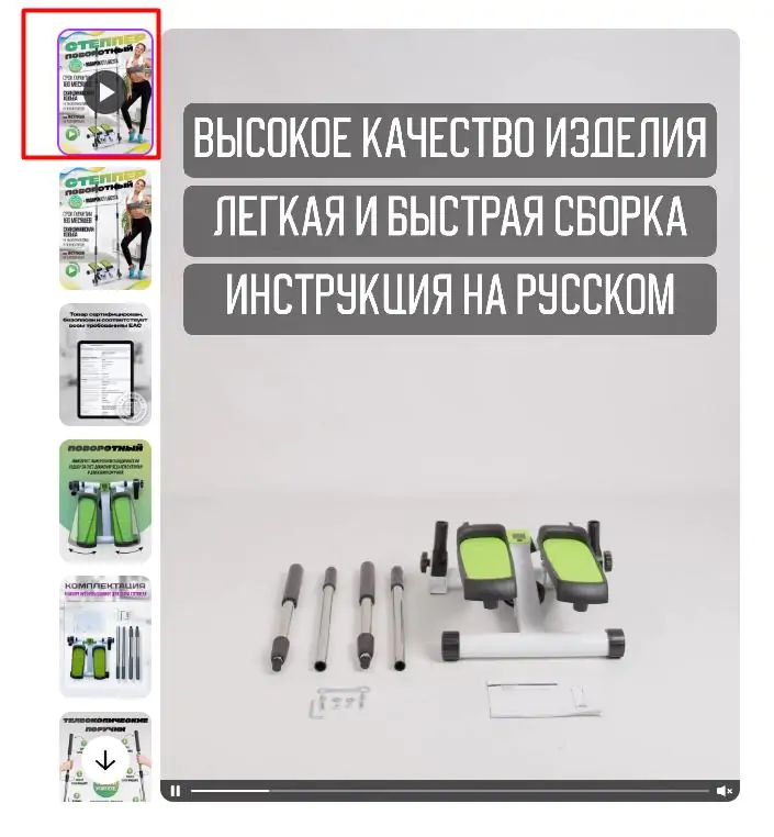 Пользователь редко просматривает все изображения подряд. Если первая фотография не даёт ясного понимания продукта, интерес теряется. Когда на первом месте стоит видеоролик, продавец получает возможность за 30–120 секунд донести ключевые преимущества товара: показать его назначение, формат использования и основные характеристики.