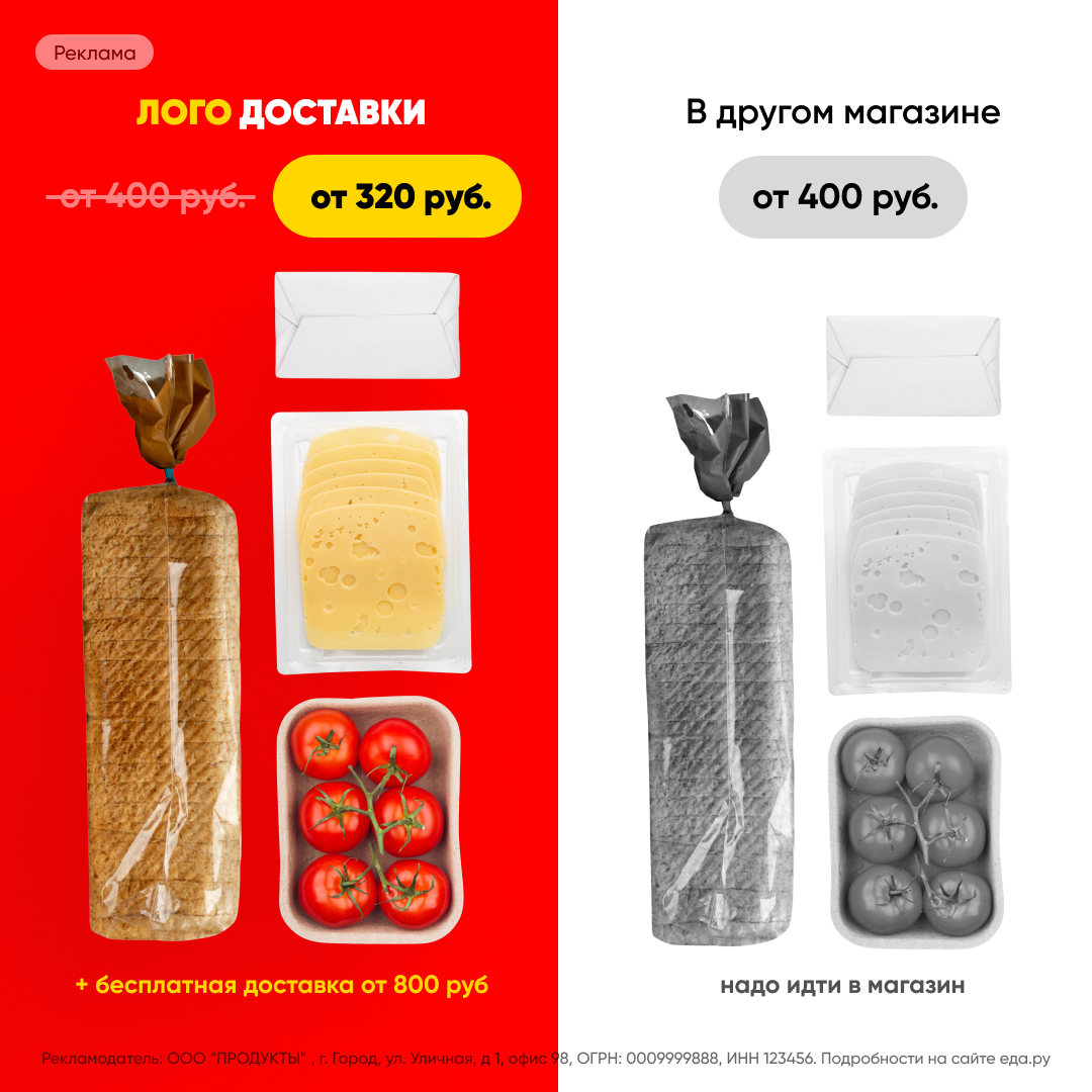 2. Продуктовая часть — товар или услуга. Например, телефон на креативе для магазина электроники или самолет — для сервиса бронирования билетов.