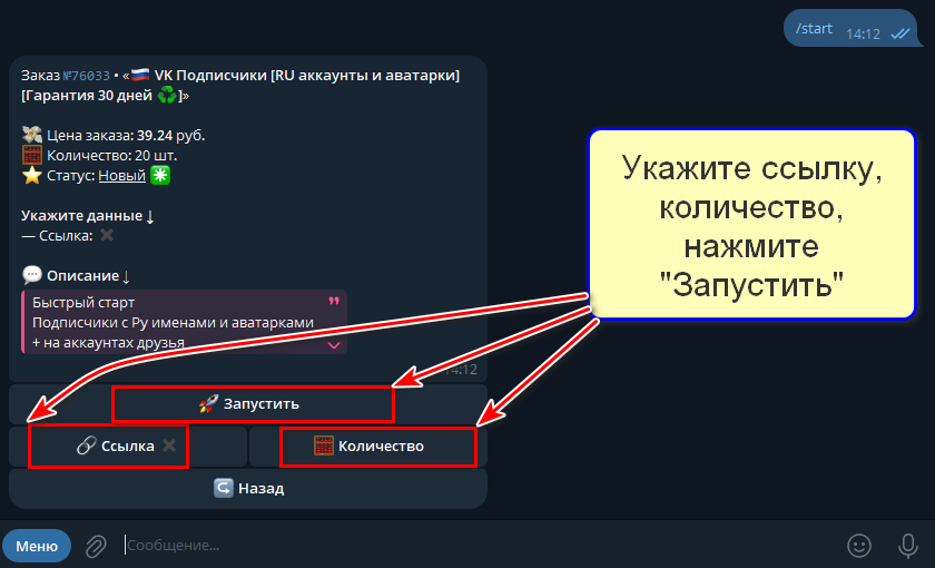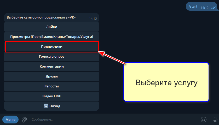 Ниже на примере @V_TOP_soc_bot научимся заказывать накрутку в ТГ ботах. Порядок действий: