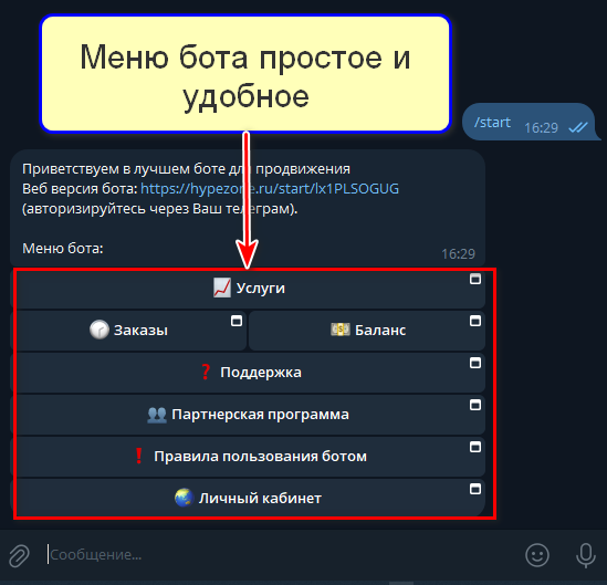 • сделать заказ можно через Телеграм, который установлен у многих пользователей, что удобно, если вы хотите купить накрутку со смартфона;