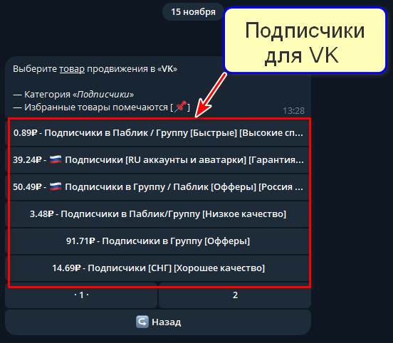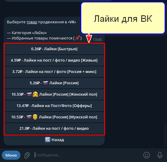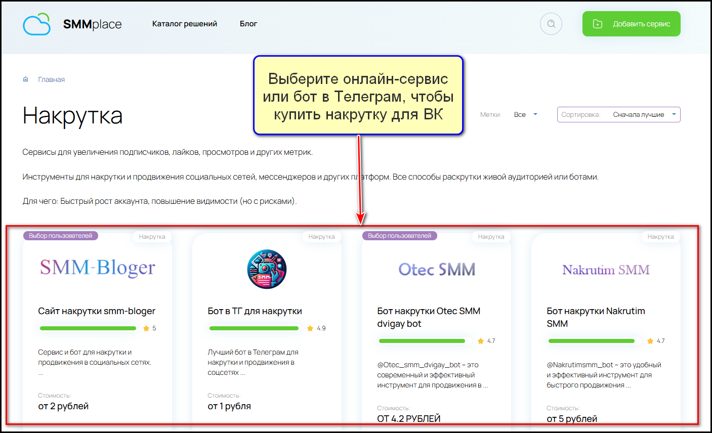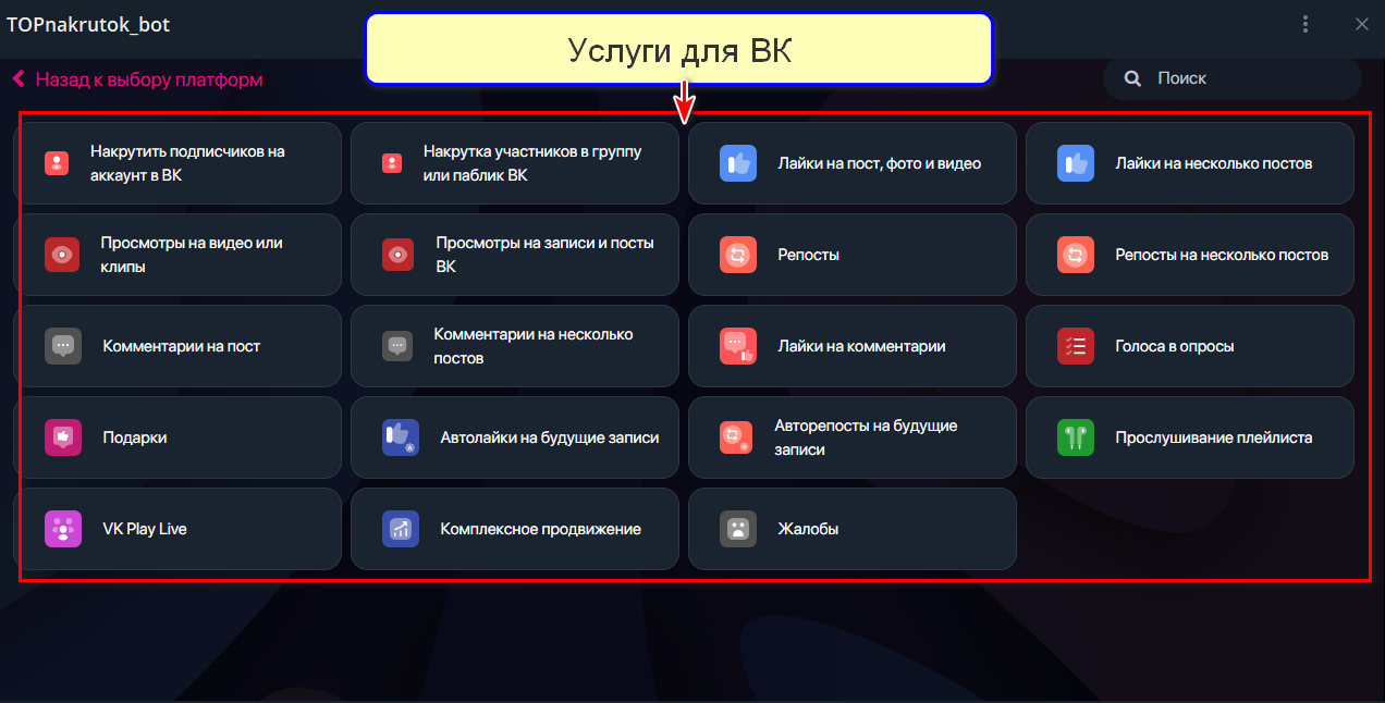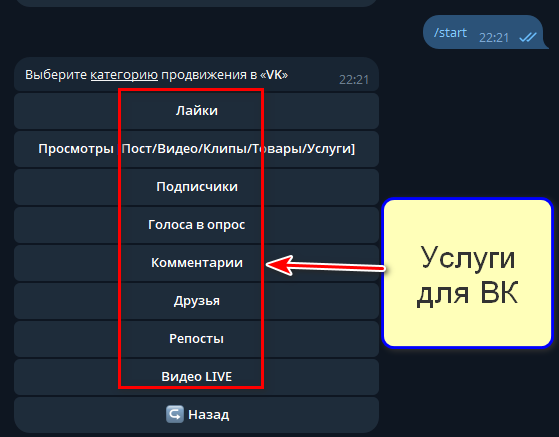 Ниже я представляю подборку лучших ботов в Telegram, где можно купить раскрутку для ВКонтакте. Каждый из них безопасен, удобен в обращении и предлагает хороший выбор услуг для VK по доступным ценам.