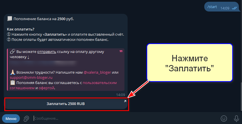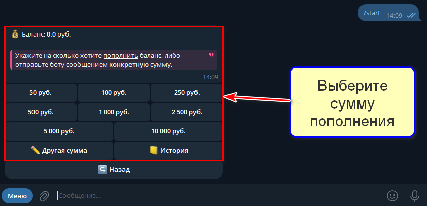 • все действия при заказе, включая пополнение счета и оплату, совершаются через интерфейс бота, переходы на другие ресурсы не требуются.