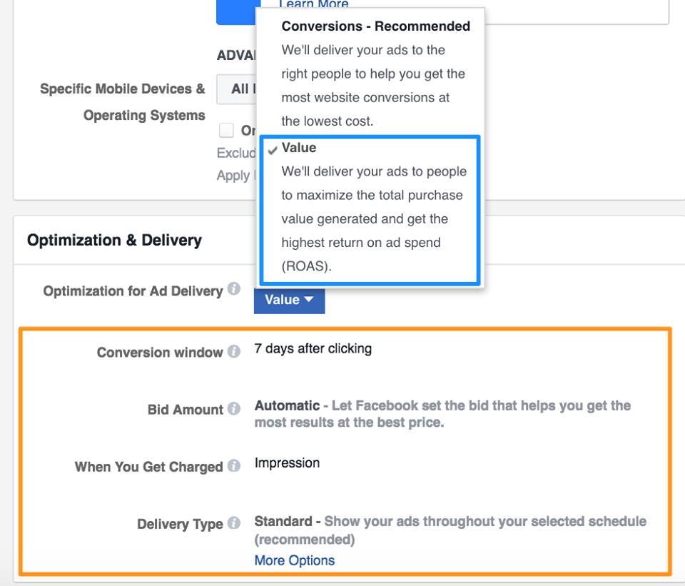 Оптимизация стоимости работает, используя значения покупки, отправленные с пикселя Facebook. Это делается для того, чтобы оценить, сколько человек может потратить на ваш бизнес за семидневный период. Затем ставка объявления автоматически корректируется на основе этой оценки, позволяя компаниям показывать рекламу людям, которые могут потратить больше средств на ваш бизнес по наименьшей цене.