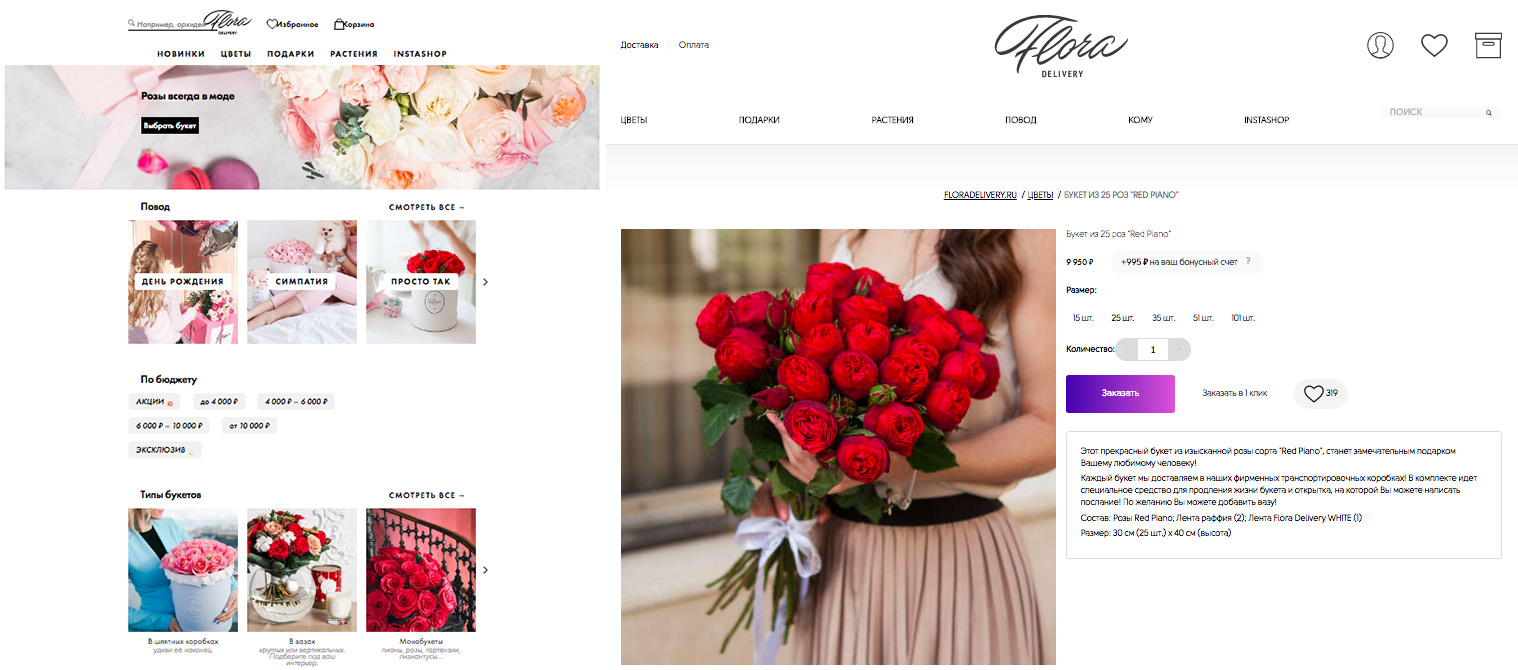 Огромная конкуренция диктует свои правила: нельзя ошибаться ни в структуре сайта, ни в работе с запросами, ни в общем продвижении. Помните, что огромное количество сайтов в любой нише выглядит как трупы: без постоянно обновляемого ассортимента, без подборок к новому сезону. Даже без статей в блоге! И это не говоря про классический пиар, публикации в СМИ или партнёрства (например, Flora Delivery огромный трафик на сайт принесла партнёрка с Тинькофф Банком).