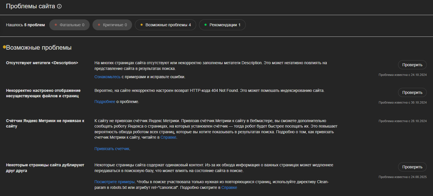 • технические ошибки — сбои в микроразметке, индексации, структуре сайта;