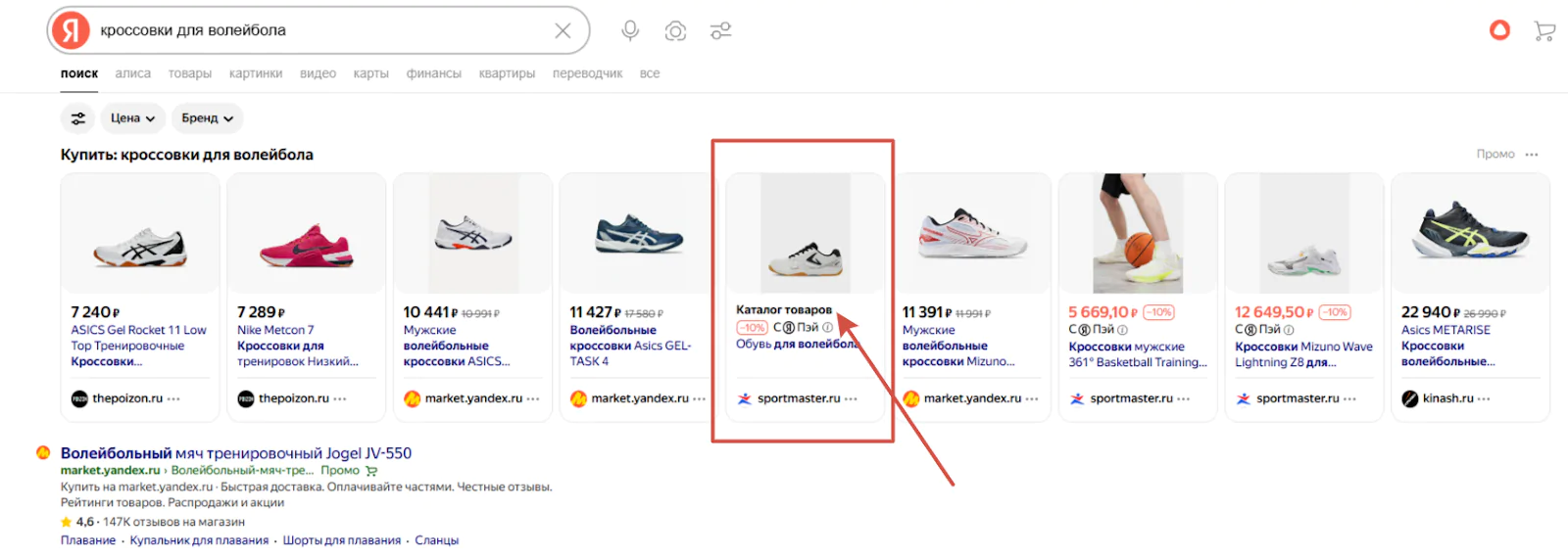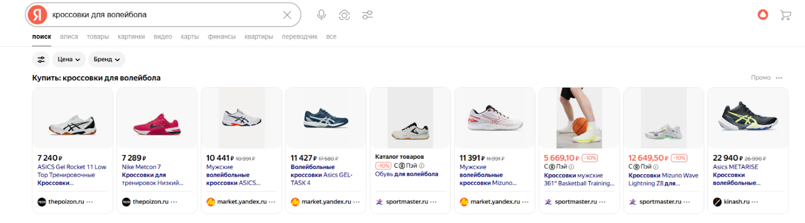 Например, человек ищет волейбольные кроссовки, и вы показываете ему каталог ваших кроссовок для волейбола, чтобы он смог выбрать подходящие.