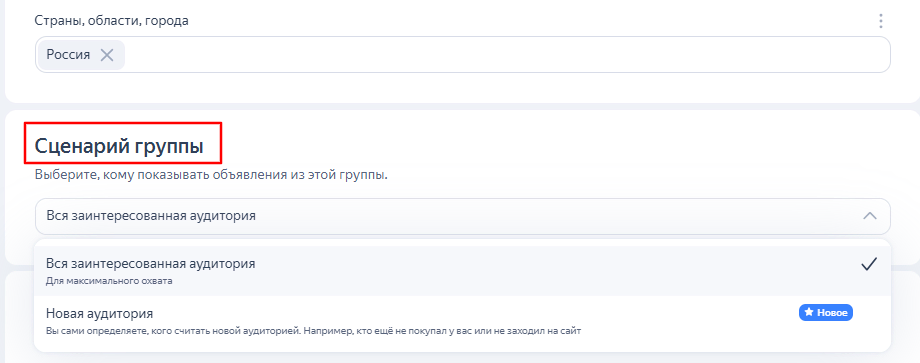 Настраивать показы новой аудитории с помощью сценария группы и повышать для нее ставку, чтобы масштабировать охват.