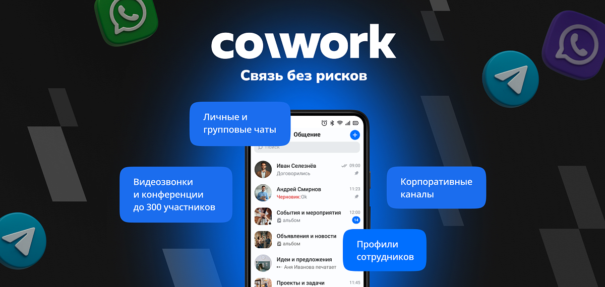 CoWork обеспечивает защищённые чаты и звонки, многофакторную аутентификацию, управляемые роли и возможность интеграции с корпоративной инфраструктурой. Это позволяет командам работать в единой среде без использования публичных мессенджеров и сохранять контроль над внутренними процессами.
