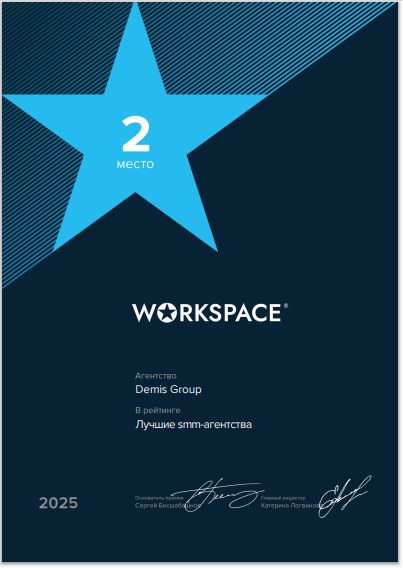 Сентябрь 2025 год — и снова победы! Demis Group вошла в число лидеров сразу нескольких рейтингов Workspace, подтвердив свой статус одной из ведущих компаний российского digital-рынка.