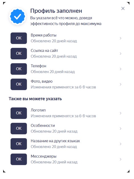 Прежде чем запускать кампанию, убедитесь, что ваш профиль в Яндекс Бизнесе полностью заполнен. Это обязательное условие: только так вы сможете воспользоваться всеми преимуществами Директа, включая точный таргетинг, аналитику и управление ставками.