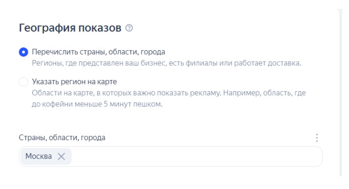 На уровне групп объявлений важно указать географический таргетинг. Это позволяет точно выбрать регионы показа, чтобы реклама показывалась только там, где находятся ваши потенциальные клиенты, и избежать ненужных расходов на аудиторию вне зоны интереса.