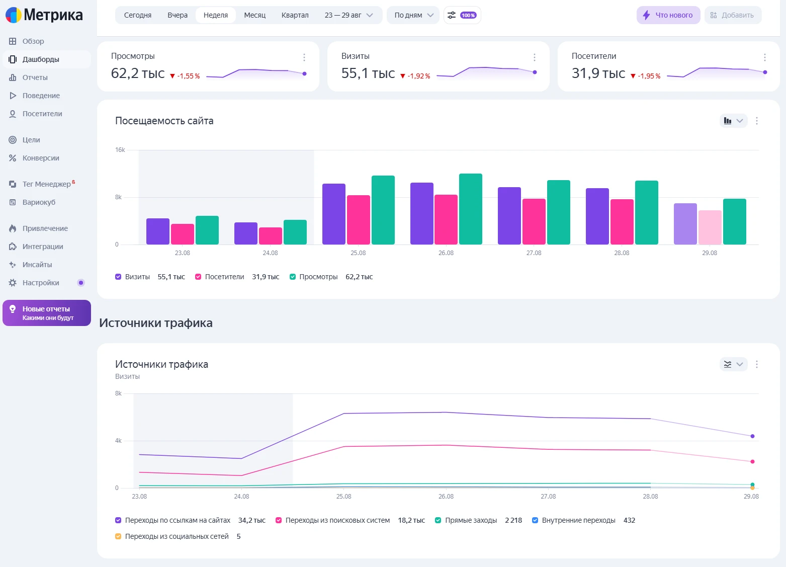 • Низкое качество трафика. Часто посетители уходят быстро, конверсии низкие, аудитория не формируется.