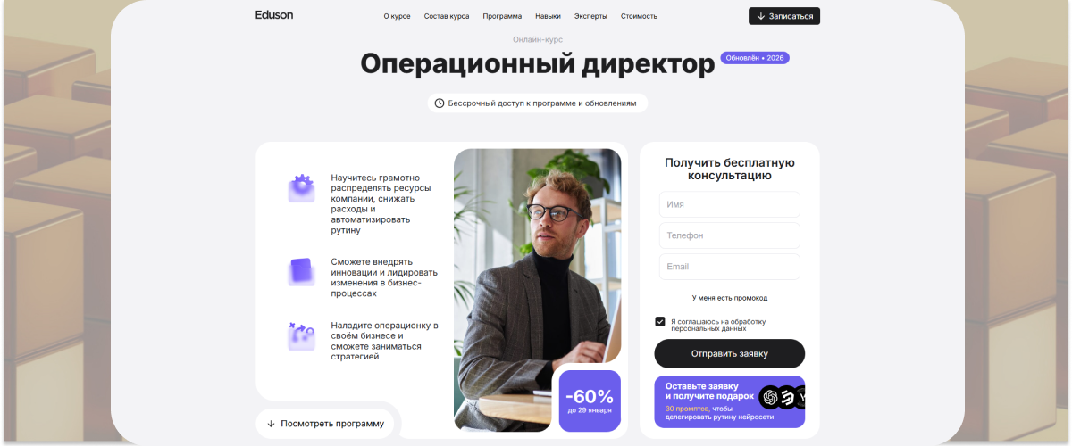 - «Операционный директор» от «Академии Эдюсон»: для профессионалов, желающих повысить квалификацию.
