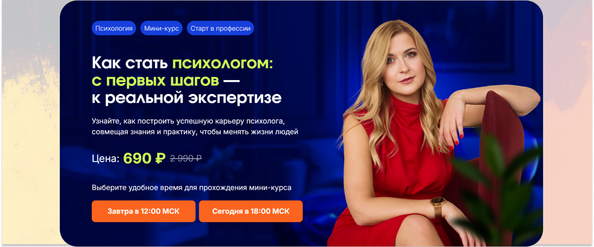 - «Как стать психологом: с первых шагов — к реальной экспертизе» от НАДПО: мини-курс по сниженной цене с инструкцией о поиске клиентов в подарок и сертификатом.