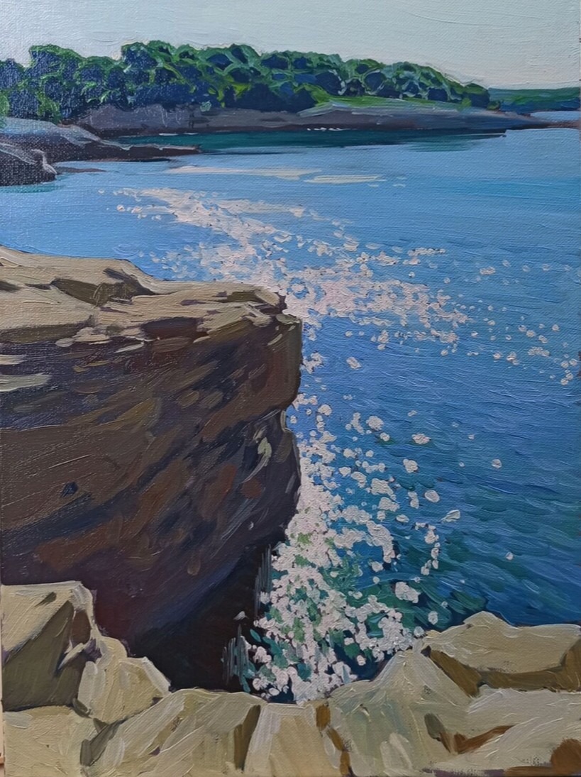Курс посвящён морской живописи маслом. Первые два занятия — разбор материалов и основ живописи, затем каждый урок — это написанная шаг за шагом сцена моря. Программа построена от простого к сложному: в начале участники учатся писать воду и волны, а заканчивают сложными сюжетами и фантастическими образами. Итогом обучения становится серия из семи морских полотен.