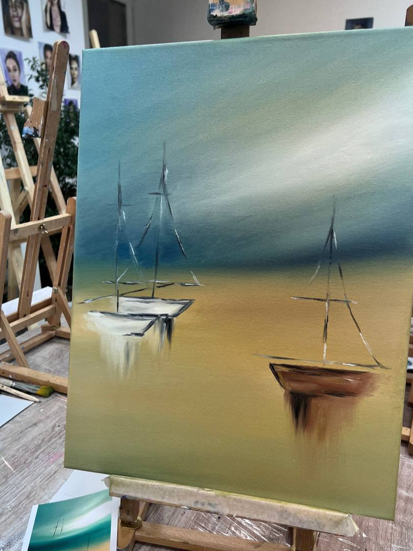 1. «Напишите своё море маслом» от Home Art: курс по морской живописи, где шаг за шагом создаётся серия из семи картин — от простых сюжетов до фантастических образов.