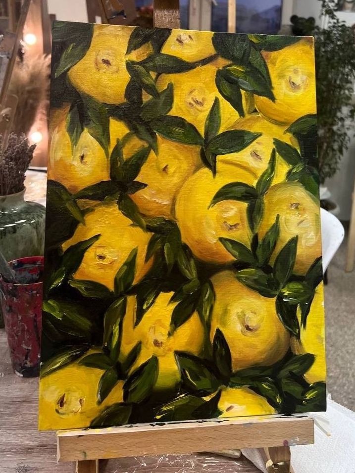1. «Картина маслом за три часа» от студии «Найди себя»: мастер-класс в мини-группе, где за одно занятие создаётся полноценная работа на холсте в творческой атмосфере с кофе-брейком.