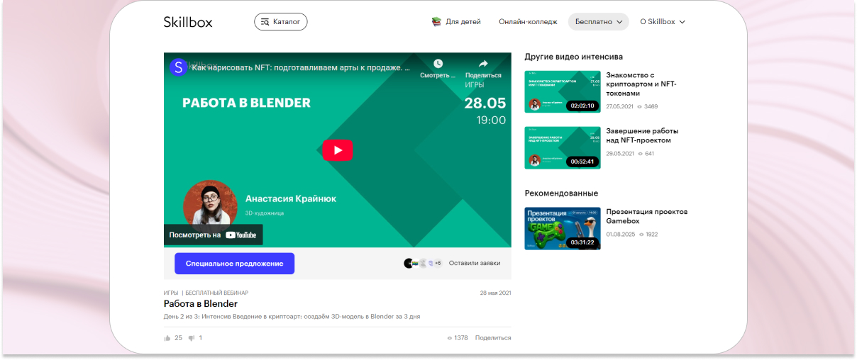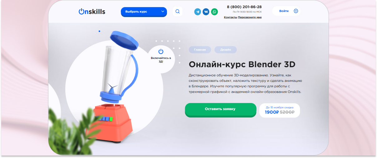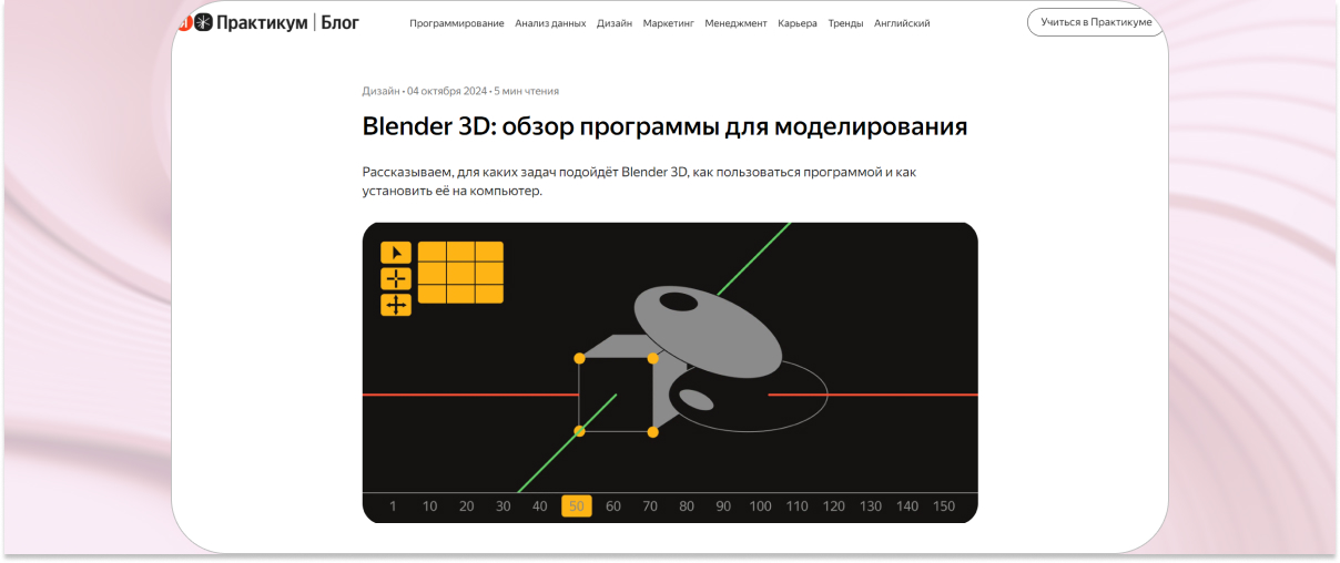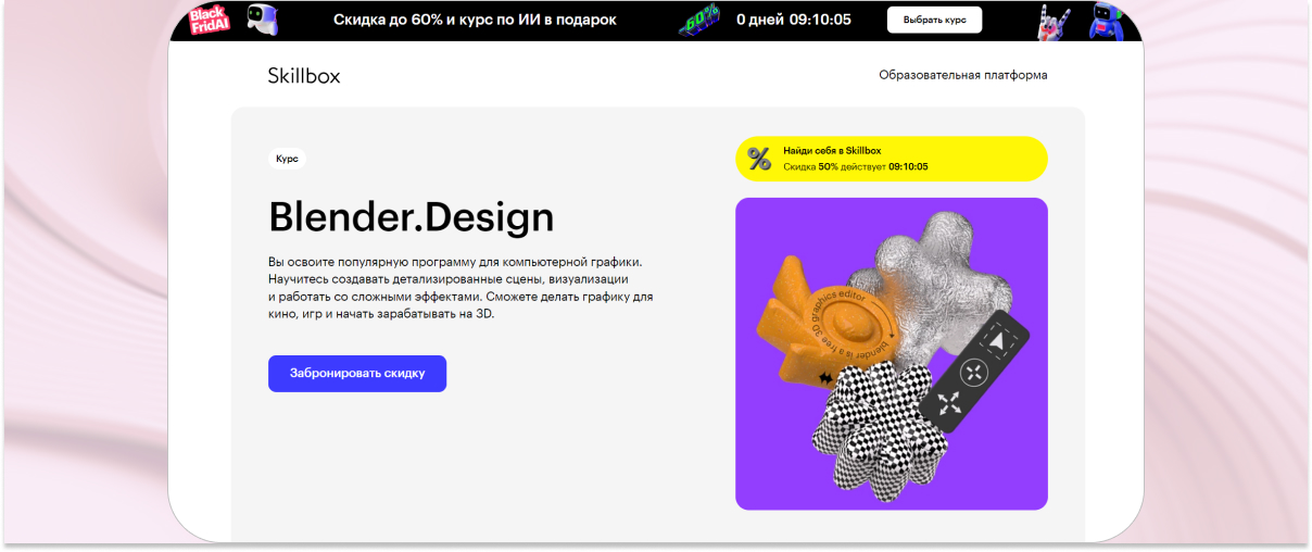 - «Blender.Design» от Skillbox: онлайн-курс по трёхмерному моделированию от экспертов с опытом работы в отрасли более пяти лет.