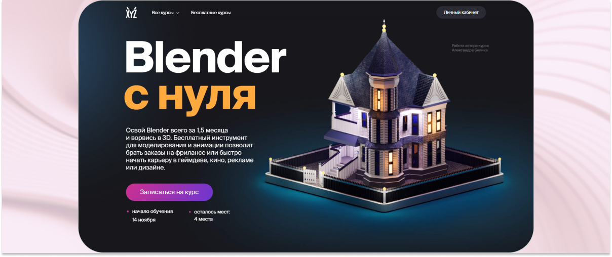 - «3D-дизайнер с нуля» от «Академии TOП»: курс, который помогает освоить основы 3D-моделирования и визуализации для работы в Blender и других программах.