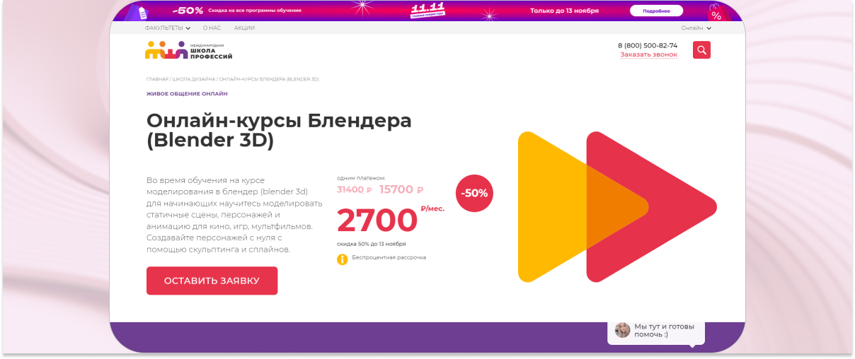 - «Онлайн-курсы Блендера» от «Международной школы профессий»: курс с десятью структурированными модулями и сертификатом установленного образца.