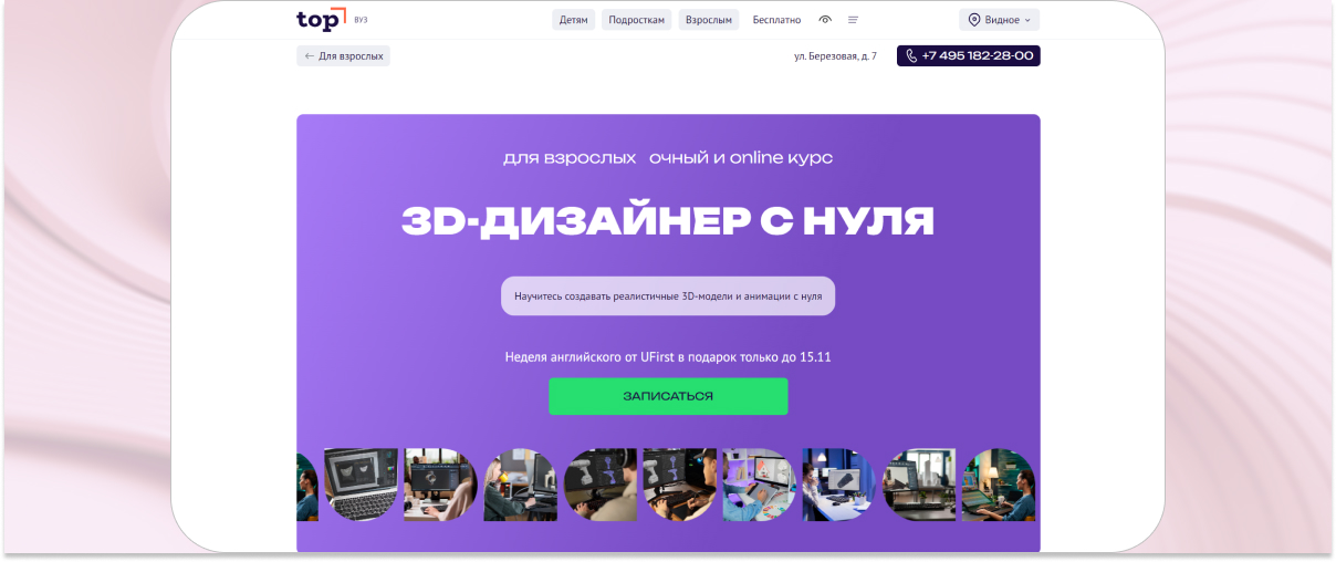 Независимо от формата, почти все курсы строятся вокруг практики: студенты выполняют задания, создают собственные 3D-сцены и добавляют готовые проекты в портфолио.