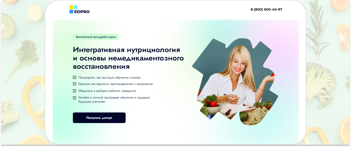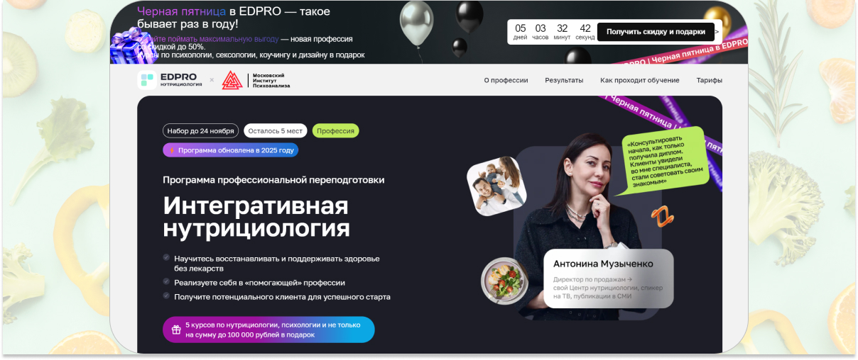 7. «Интегративная нутрициология» от Edpro: курс с получением баллов непрерывного медицинского образования.