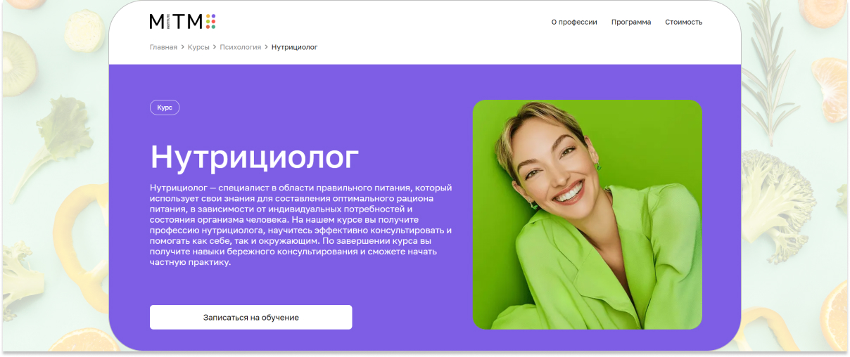 2. «Психолог-нутрициолог» от MITM: курс с регулярным обновлением программ на основе исследований рынка труда и нововведений в нутрициологии.