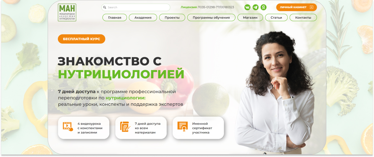 1. «Практический нутрициолог с нуля» — «Международный институт интегративной нутрициологии»