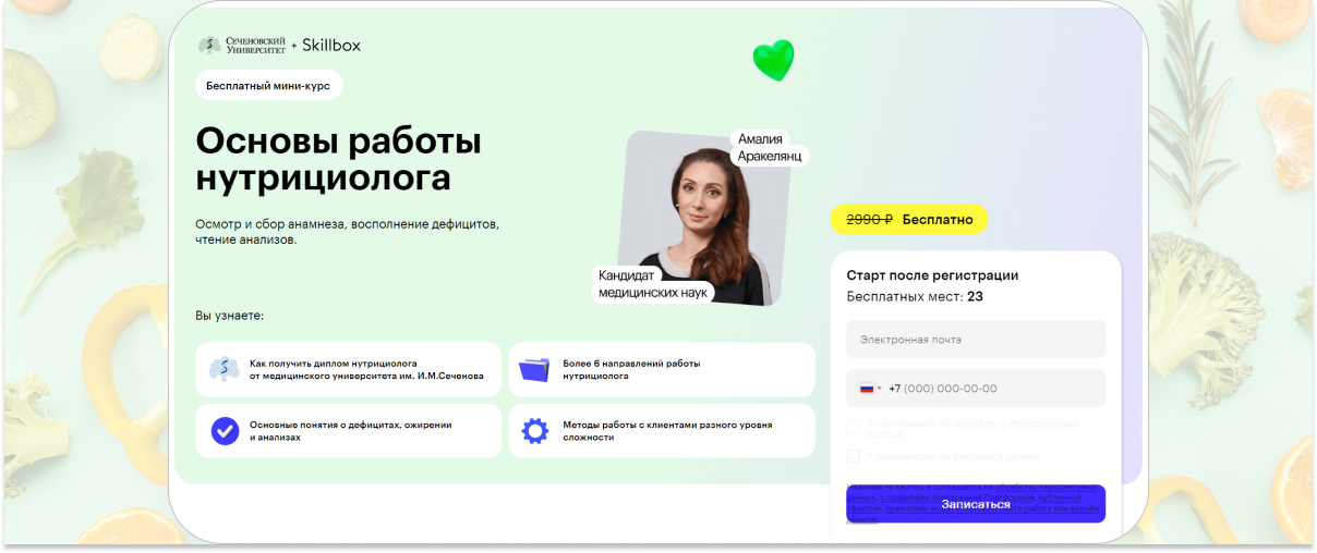 Для составления сбалансированного рациона недостаточно информации из интернета — требуется комплексная оценка состояния организма. Этим занимается нутрициолог, что делает профессию все более востребованной. Навыки и квалификацию для ведения консультаций можно получить на курсах: