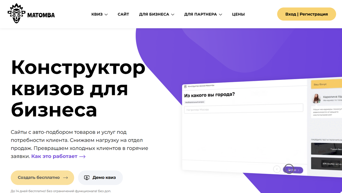 - Matomba: инструмент для создания маркетинговых квизов с привязкой к мессенджерам.