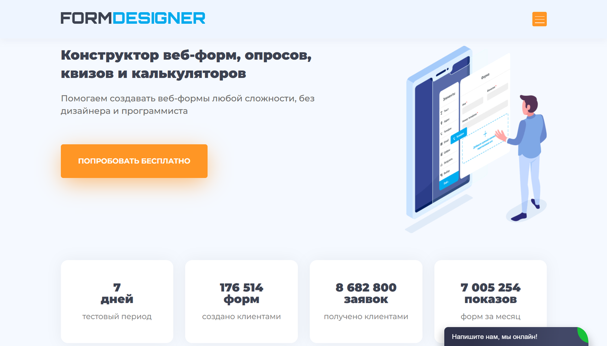 - FormDesigner: конструктор веб-форм и опросов с возможностью настройки сложной логики показов.
