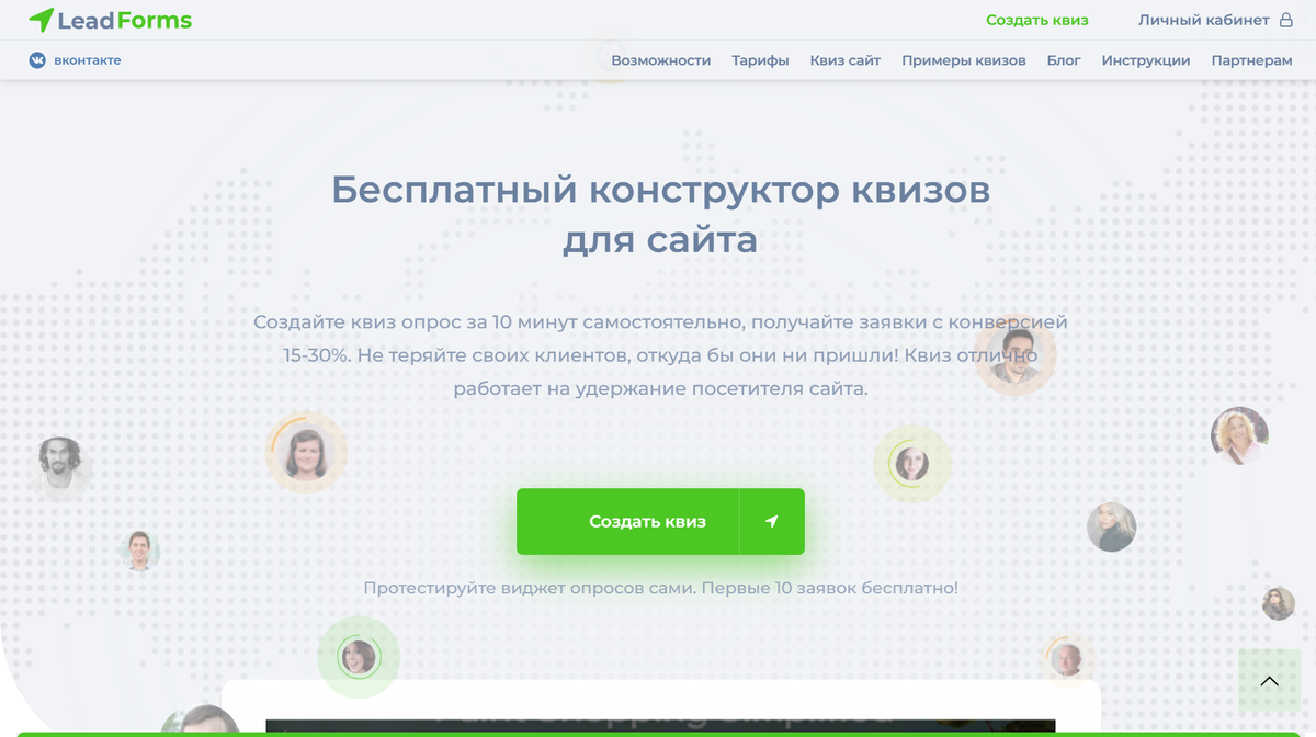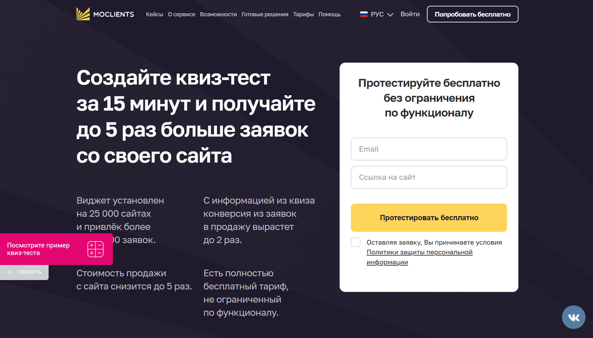 Бесплатный доступ: один квиз с лимитом 100 контактов в месяц.