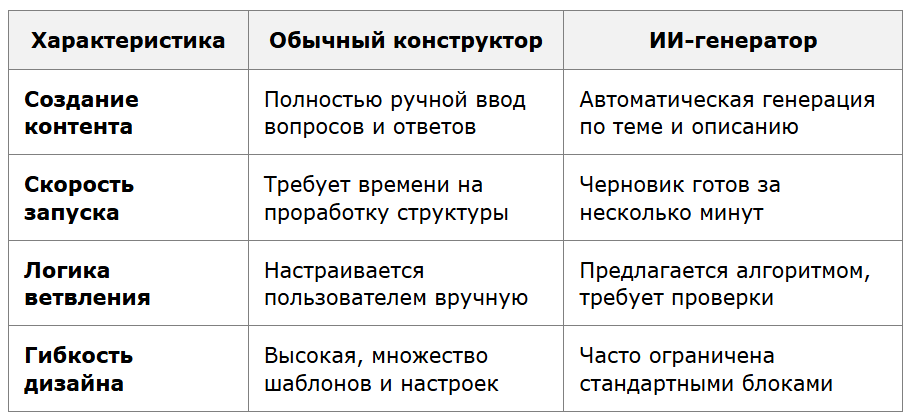 Принципы работы генераторов квизов и их отличие от обычных конструкторов