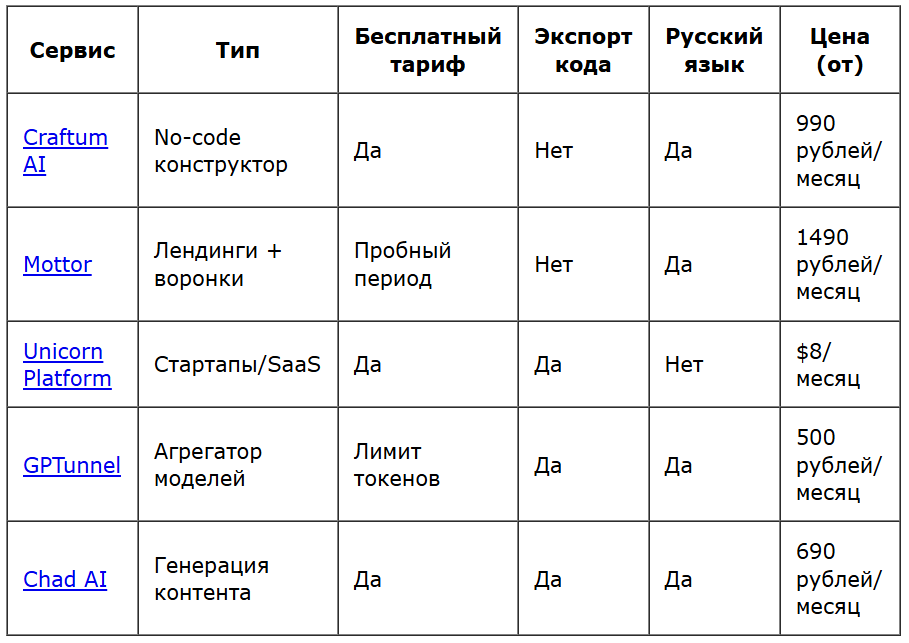 Сравнительная таблица ТОП-5 сервисов по ключевым параметрам