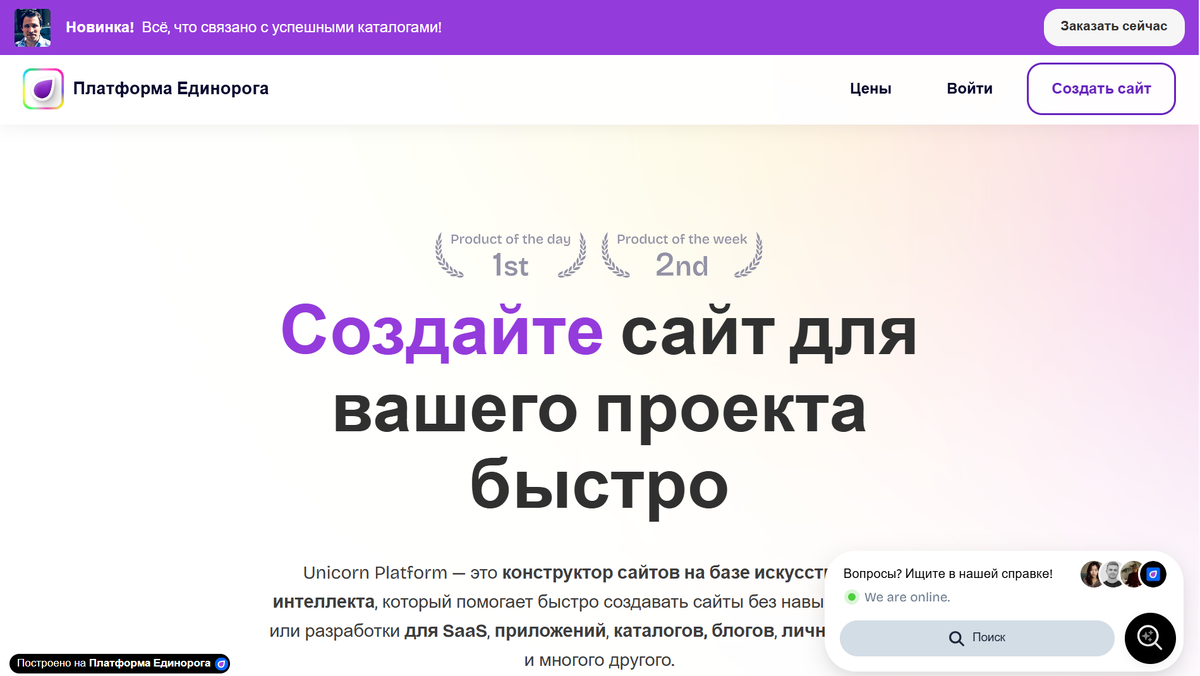 5. Unicorn Platform — конструктор лендингов, использующий ИИ для быстрой сборки страниц стартапов и SaaS-проектов.