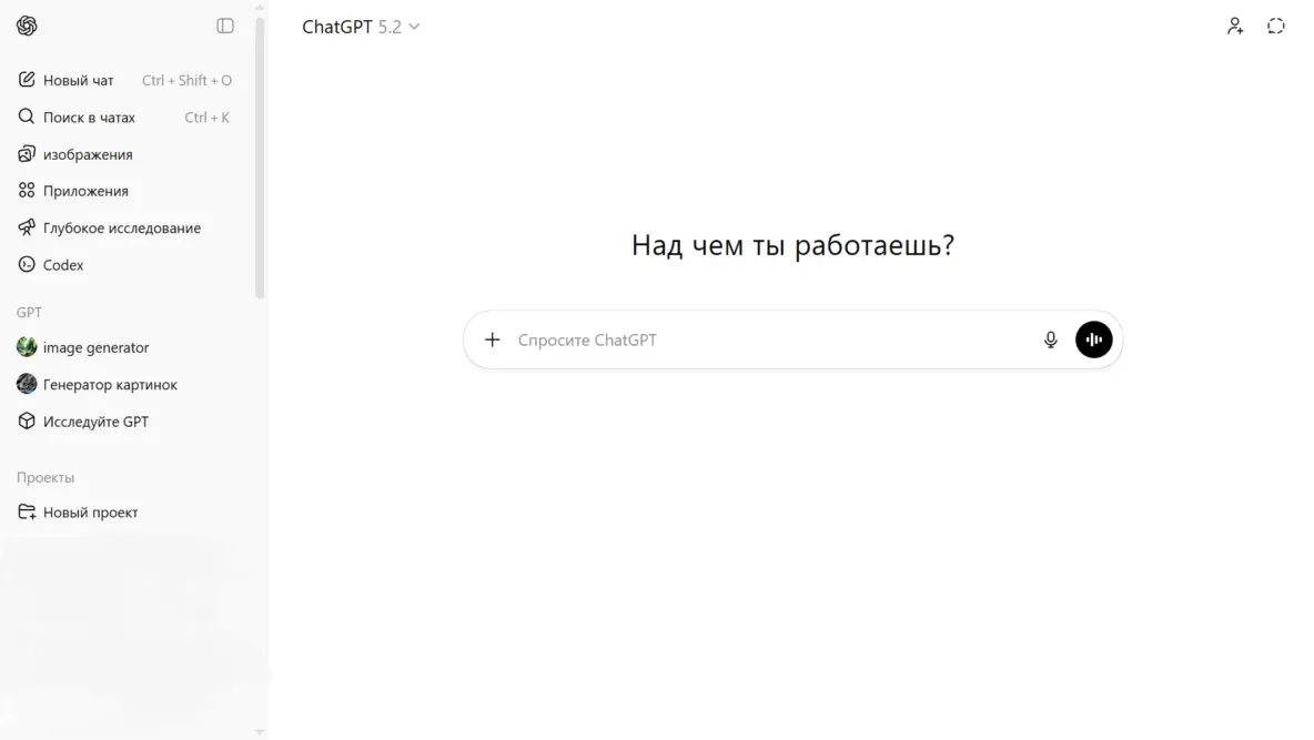 Формат работы: онлайн, браузер, официальный сайт OpenAI.