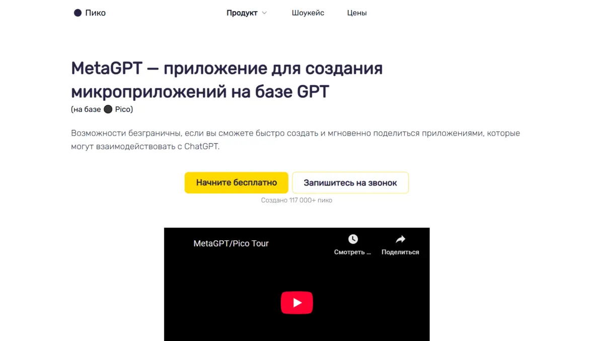 - Pico: Сервис для генерации простых веб-приложений и утилит исключительно посредством текстового описания желаемого функционала.