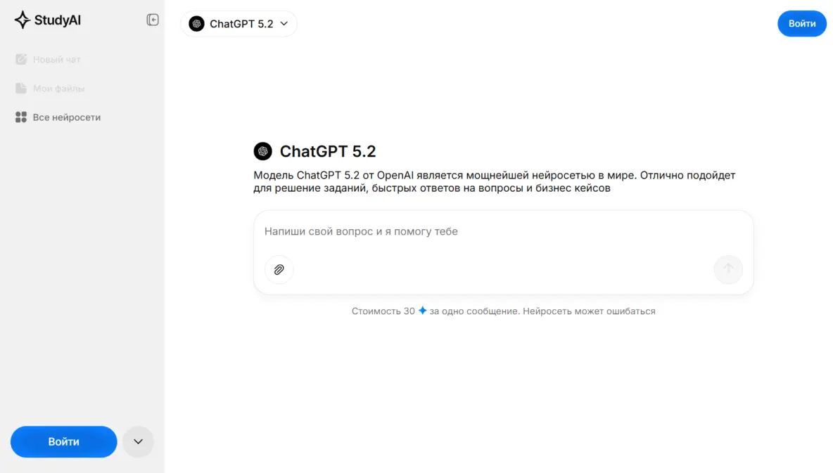 ChatGPT 5.2 — обновлённая языковая модель от OpenAI с расширенным контекстным окном и улучшенной генерацией кода. Модель пишет программы на Python, JavaScript, C++, Go, Rust и других языках, создаёт API-эндпоинты, разрабатывает архитектуру баз данных и формирует SQL-запросы. ChatGPT 5.2 доступна через агрегатор Study AI, который работает без VPN и принимает оплату российскими картами. Модель запоминает контекст беседы на протяжении до 128 тысяч токенов, что позволяет обсуждать большие проекты без потери логики.