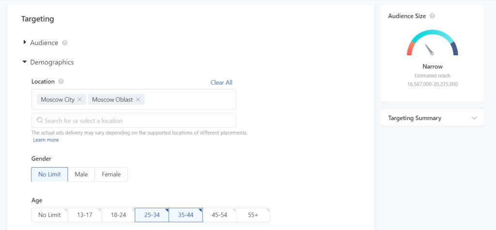 Для расчетов можно использовать данные других клиентов из той же сферы. Если таких нет, воспользуйтесь цифрами по другим клиентам, кейсами других агентств и специалистов, данными исследований, официальными рекомендациями TikTok. Также при прогнозировании вы можете ориентироваться на объем аудитории в настройках рекламной кампании.